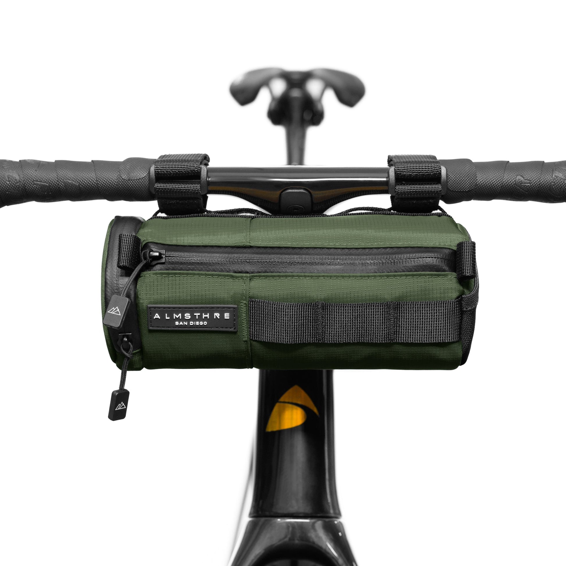 Say HELLO to our compact bar bag! All of the same great features of our signature bar bag, just 1” smaller in diameter. With our hard shell design, this bag will retain its shape regardless of what's inside. This bag features quick-access waterproof side zipper and mesh pockets, water resistant materials, and internal mesh organizer pocket.Features: Waterproof Zippers Adjustable bar straps & stem tether cord for a secure fit Multiple strap mounting options to fit your handlebars Premium Nylon Ripstop Material (Water Resistant) Enlarged side zipper pocket perfect for your credit card and small items Hard shell construction for easy one handed access and no flop Internal mesh pocket for organization