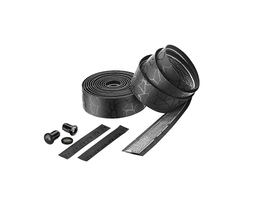 Ciclovation Leather Touch Bar Tape Magma Ash Uniquely formulated synthetic leather with magma-inspired graphic texture for superb grip and handling performance Multi-layer, multi-density foam laminates effectively absorb shock, dampens vibration, and minimizes fatigue Highly elastic and lightweight organic adhesive will not leave residue on the handlebars to ease installation and adjustment Reusable, expanding locking bar plugs are reliable and resistant to falling out Highly elastic finishing tape does not deform, degrade of soften in extreme temperature and weather conditions