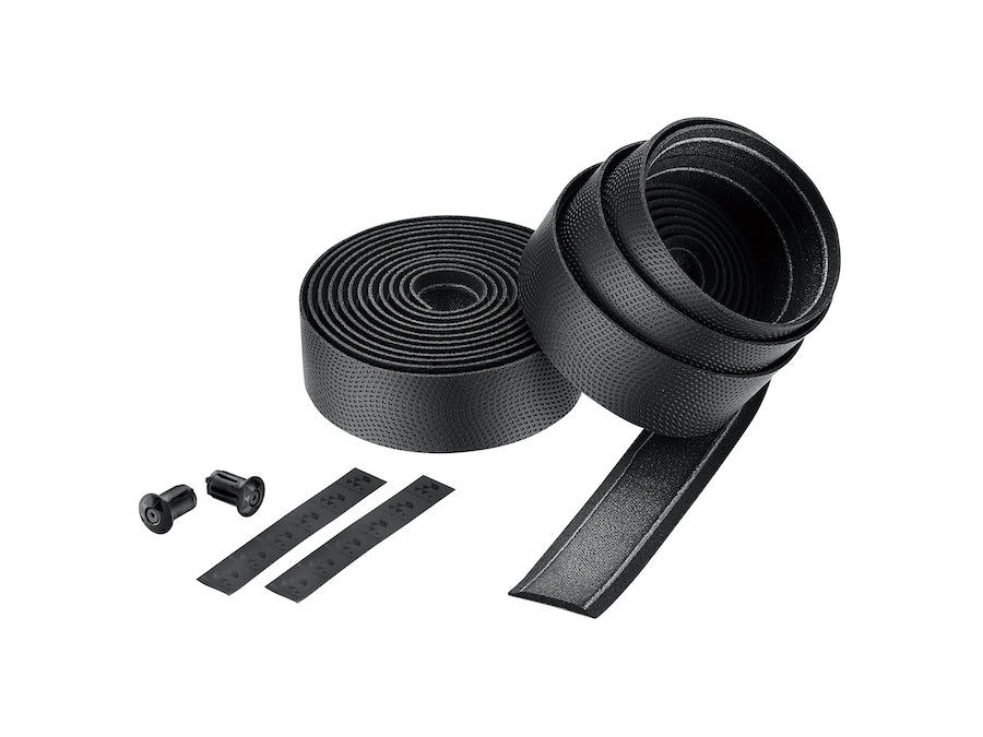 Ciclovation Leather Touch Bar Tape Solid Black Polyurethane layer is anti-slip with high tensile strength for long-term performance. Smart GEL is vibration damping and shock absorbing to minimize fatigue and strain due to real-world riding conditions. Reliable and reusable Lock-In bar end plugs.