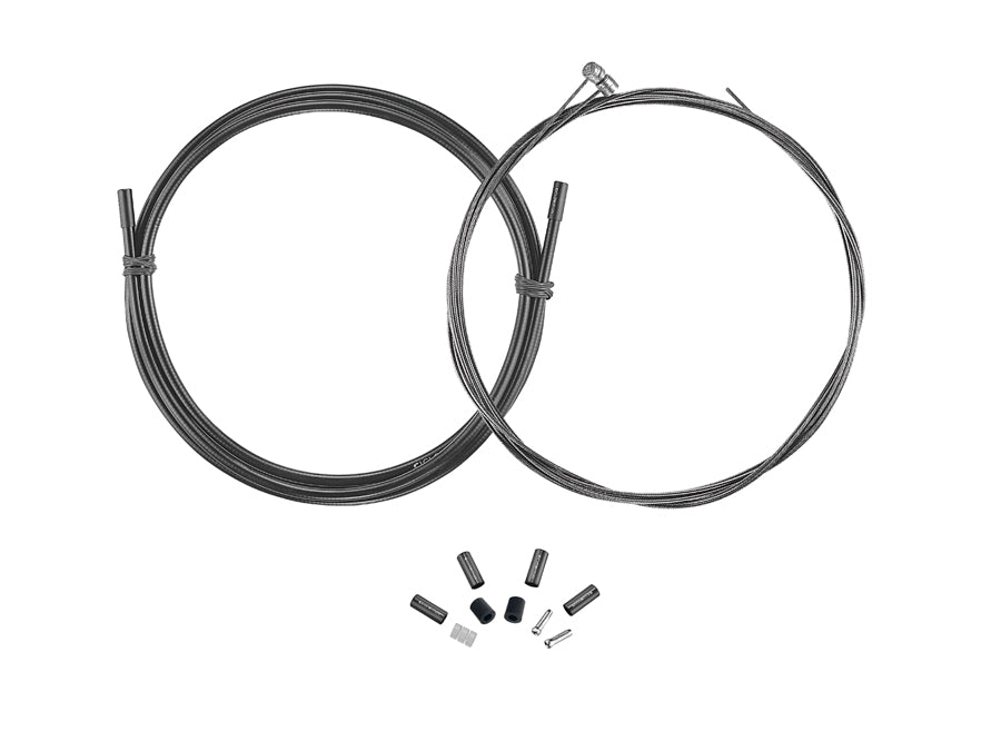 Advanced Brake Set, Mountain, Shimano/SRAM System. Low compression outer casing for predictable braking performance A fully lubricated inner housing liner reduces friction and enhances lever feel Stainless steel low friction inner cable Compatible with all cable-actuated road bike brake systems Compatibility: Shimano® / SRAM® Outer Casing: 5 mm Coiled Lube (OBC Lube 5.0) Inner Cable: 1.5 mm Stainless Slick (ISS) Cable Length: Front: 1350mm and, Rear: 2350mm Parts: 6 x Open End Cap, Alloy / Black 3 x Cable Oring, Translucent (1 set = 3pcs) 2 x Frame Protector, Mini Black 2 x Cable Tip, 1.8 mm, Alloy / Silver