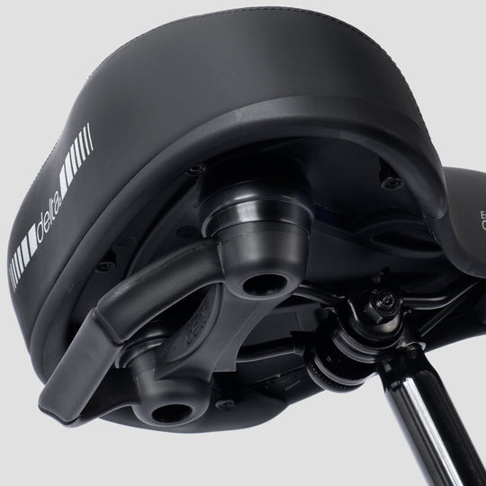 Memory Foam Comfort Saddle - Cruiser Closed cell memory foam and dual shock dampening system to cushion shocks and reduce vibration Reflective printing on nose and rear for added safety Easily mount on standard seatpost clamp Grab handle for easy bike transport