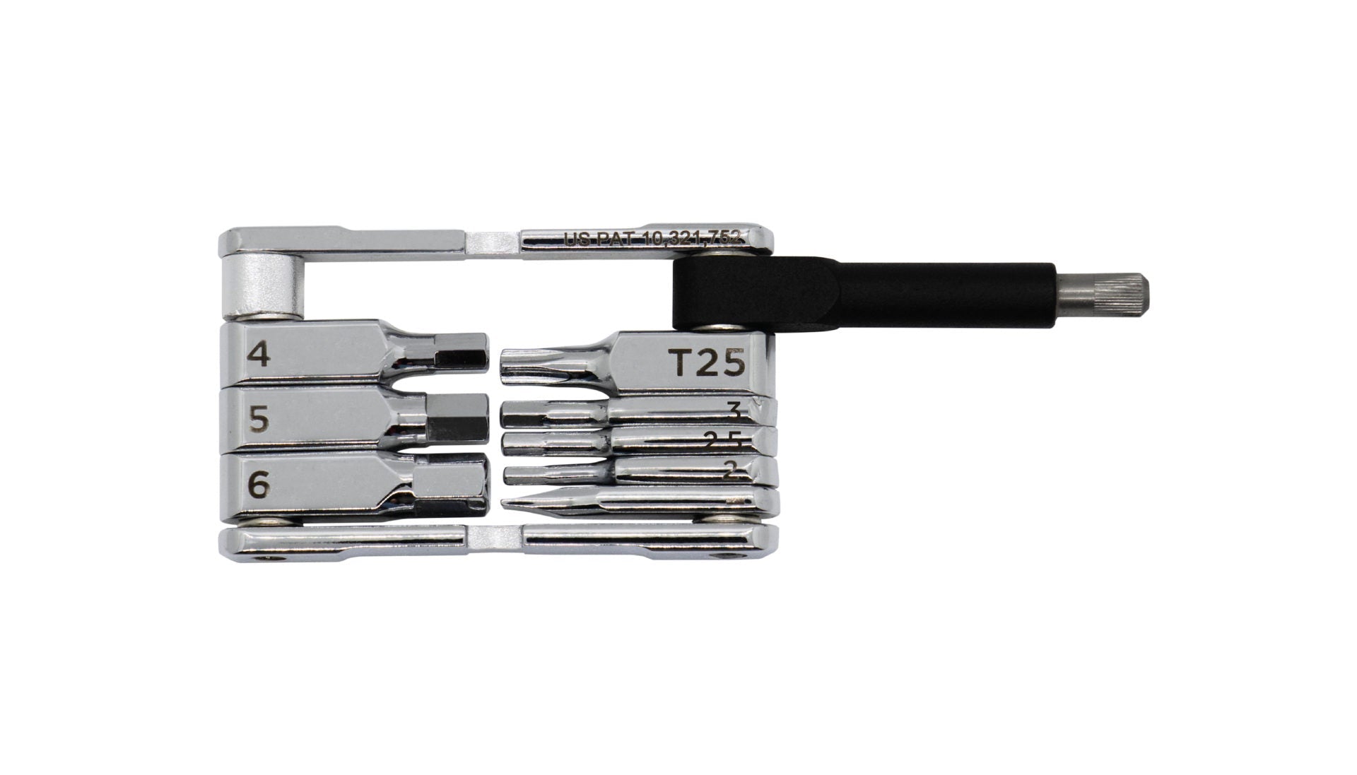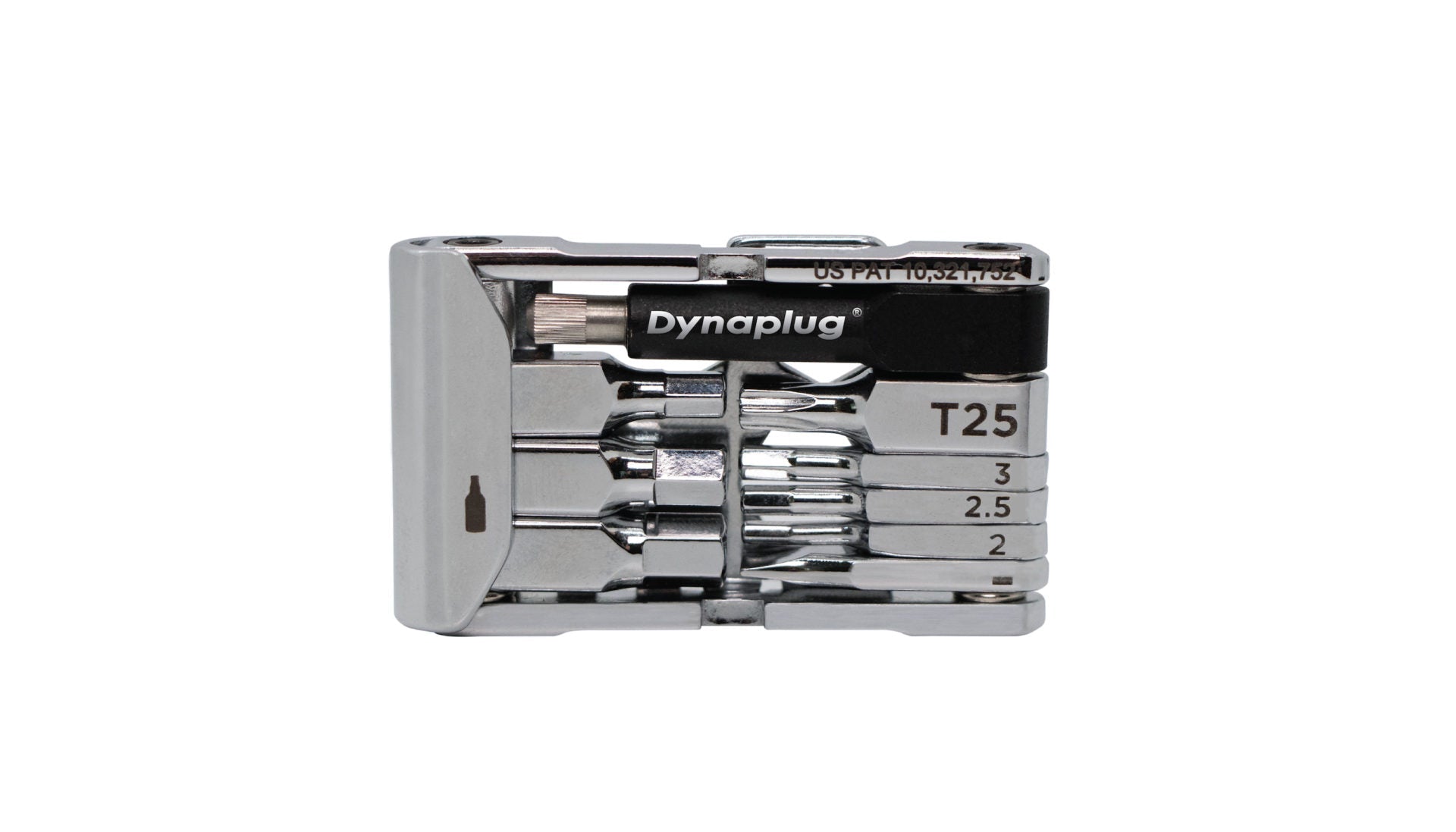 Our most popular bike tool just got even better, now with Dynaplug. Store and apply a single tire plug with this proprietary tool bit. For those quick hit missions when you want to travel light, no need to carry a separate pouch or a secondary puncture repair tool. The Wheelie Wrench has all the basics – 2mm thru 6mm hex wrenches, Torx, spoke wrenches, and more. All in a compact form factor that is just a little bit bigger than a matchbox. Compatible with all our Payload Pocket carry solutions. Replacement plugs available at www.dynaplug.com.Features: Proprietary Dynaplug storage / application Slotted screwdriver Tire lever Spoke wrenches Bottle opener Payload Pocket compatible