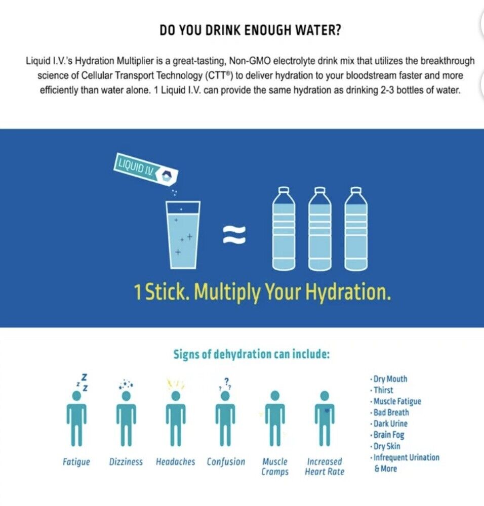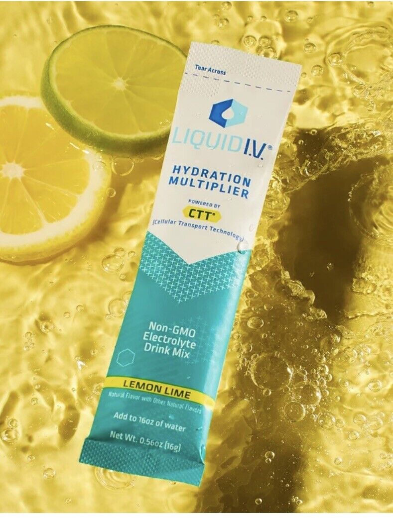 Product detailsLiquid I.V.'s Hydration Multiplier is a great-tasting, non-GMO electrolyte powder drink mix powered by Cellular Transport Technology (CTT)® designed to enhance rapid absorption of water and other key ingredients into the bloodstream. Typically, when you drink fluids, they pass through the entire digestive system, losing water before your body can absorb it. CTT® uses a precise ratio of sodium, glucose, and potassium to create an osmotic force that allows water to be delivered to the bloodstream earlier on in the digestive system. Liquid I.V. Hydration Multiplier can hydrate faster and more efficiently than water alone. 1 serving contains 3x the electrolytes of traditional sports drinks and 5 essential vitamins.Translation? More fuel for life's adventures.WE ARE ON A MISSION TO CHANGE THE WORLD. For every purchase of Liquid I.V., we donate a serving to someone in need. Since 2015, we have donated over 19 million servings globally.Liquid I.V. Hydration Multiplier, Lemon Lime, 15 Ct, Electrolyte Powder Packet Drink Mix: Hydration Multiplier, our great tasting, non-GMO electrolyte drink mix, is powered by CTT® to deliver hydration to the bloodstream faster and more efficiently than water alone. Enjoy the sunny mix of citrus flavors in our lemon lime powder mix that is equal parts zesty and refreshing. Cellular Transport Technology, or CTT®, is the breakthrough delivery system, used in all of our products, designed to enhance rapid absorption of water and other key ingredients into the bloodstream. Made with premium ingredients, Hydration Multiplier Electrolyte Powder Drink Mix contains 5 essential vitamins including Vitamins B3, B5, B6, B12 and Vitamin C. These non-GMO drink mixes are also gluten-free, soy-free, and dairy-free. CONVENIENCE Single-serving, travel-friendly packets are easy to enjoy on the go. Pour one packet into 16 oz of water, mix or shake, and hydrate. Liquid I.V. provides much-needed hydration in disaster zones, hospitals, impoverished communities, and emergency living quarters across the globe. Since 2015, we have donated over 19 million servings. InstructionsSuggested Use: Add 1 stick to 16 oz of water and mix thoroughly before drinking. Take as needed to support hydration. Recommended by doctors and safe for kids. Store in a cool, dry place.IngredientsPure Cane Sugar, Dextrose, Citric Acid, Salt, Potassium Citrate, Sodium Citrate, Dipotassium Phosphate, Silicon Dioxide, Rebaudioside A (Stevia Leaf Extract), Natural Flavor, Vitamin C (Ascorbic Acid), Vitamin B3 (Niacinamide), Vitamin B5 (D-Calcium Pantothenate), Vitamin B6 (Pyridoxine Hydrochloride), Vitamin B12 (Cyanocobalamin)