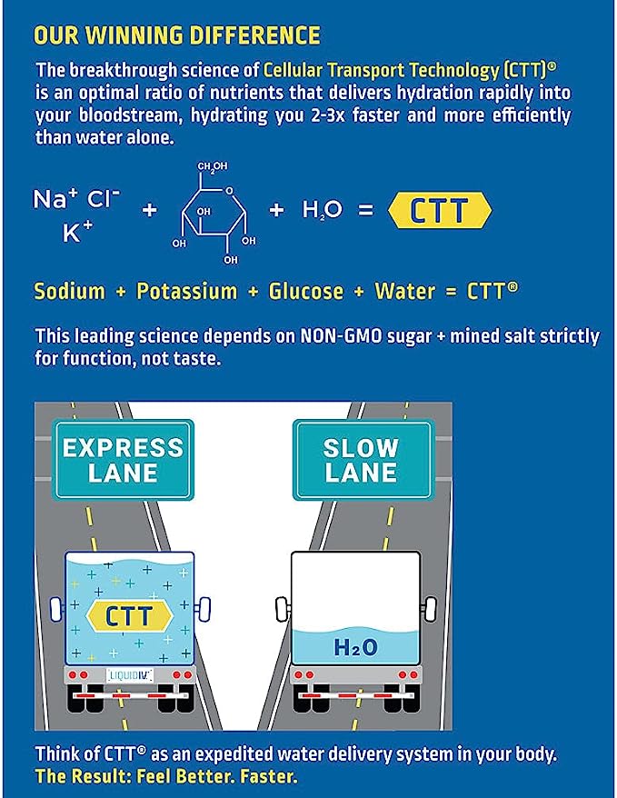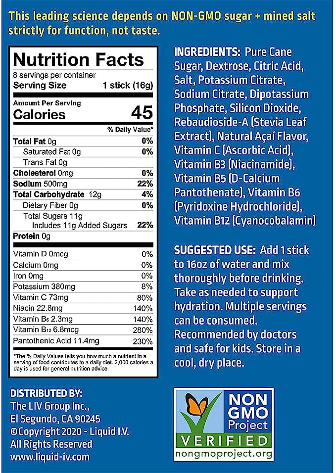 ABOUT THE PRODUCHydrates 2-3x faster and more efficiently than water aloneWe recommend adding 1 stick of Energy Multiplier to 16 ounces of cold water.Non-GMO electrolyte drink mix 3x the electrolytes of leading sports drinks (with less than half the sugar and calories)Free of Gluten, Dairy, and SoyNo artificial sweeteners, preservatives, colors or flavorsContains 11 essential vitamins and minerals with more Vitamin C than an orange and more potassium than a banana110% Daily Value Vitamins C, B3, B5, B6, B12Breakthrough formula builds upon the standards established by the World Health Organization (WHO) and UNICEF to help promote and maintain optimum hydration