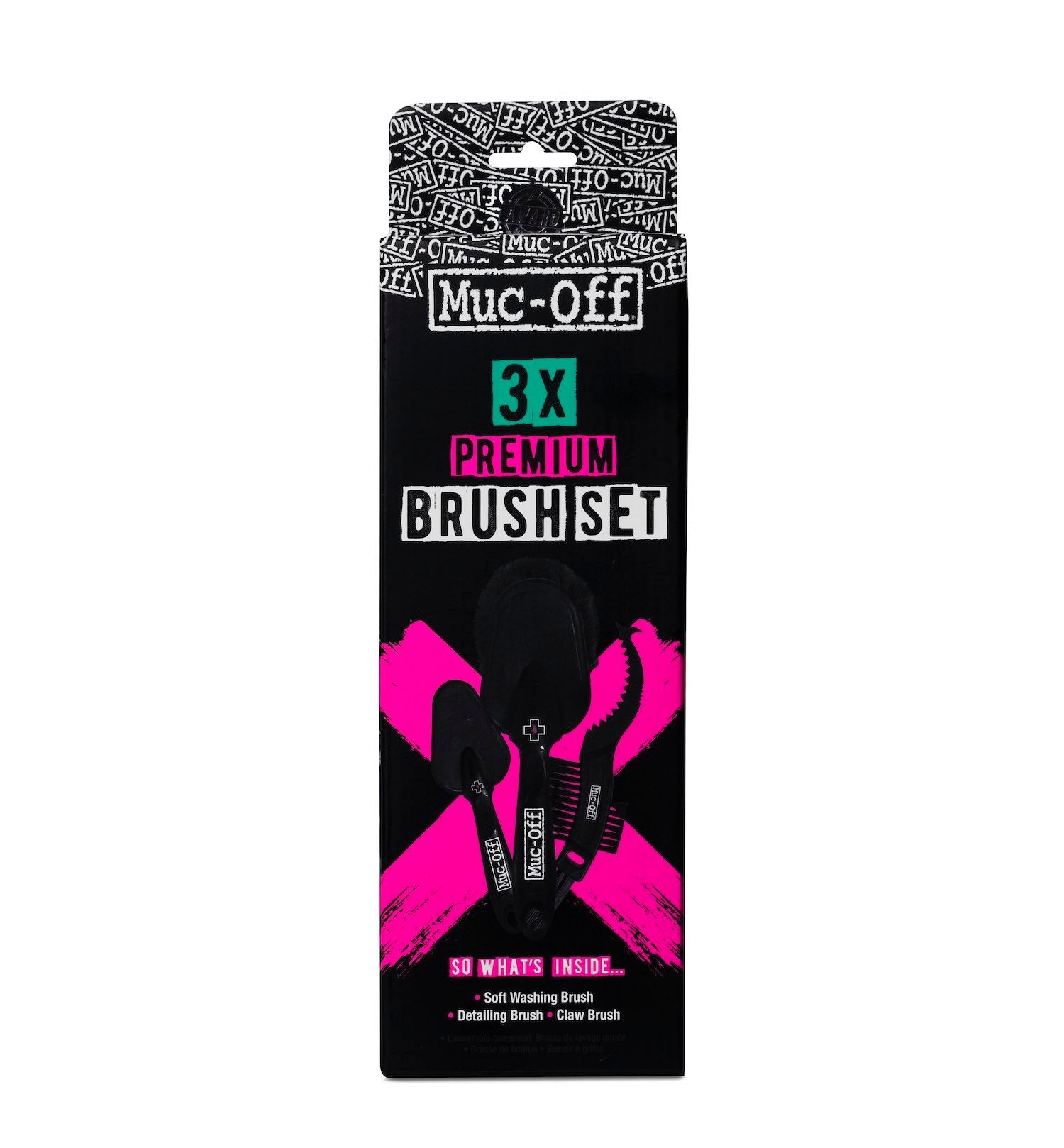 Three brushes for three times the cleaning ability. These will make getting to those tricky spots on a bike easier than ever. Soft Washing Brush features a sintered bristle compound that's designed to clean your wheels and components while caring for delicate finishes. Its new design has a tough, impact-resistant handle that won't slip in extreme conditions, an oversized head for fast cleaning of large areas, and rubberised impact zones for maximum protection.Detailing Brush is ideal for reaching hard-to-shift dirt. Its all-new design features a tough, impact-resistant handle that won't slip in extreme conditions, durable nylon bristles, and rubberised impact zones for maximum protection on delicate finishes.Claw Brush features high-quality construction with triple brush heads with tough nylon bristles and an integral scraper. Great Value - Save £3! Ideal Christmas or birthday gift for friends & family Contains Soft Washing Brush, Detailing Brush & Claw Brush WHAT'S INCLUDED? Soft Wash Brush - For your bike's frame and components Claw Brush - For cleaning your bike's drivetrain Detailing Brush - For those hard-to-reach places NB: To maintain the performance of all brushes avoid use with boiling water and on hot parts. We recommend using warm water and allowing all hot parts to cool before use