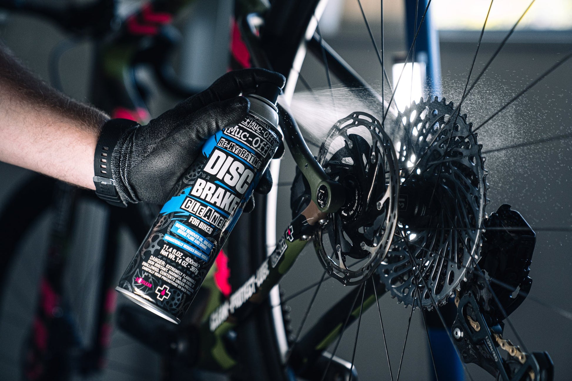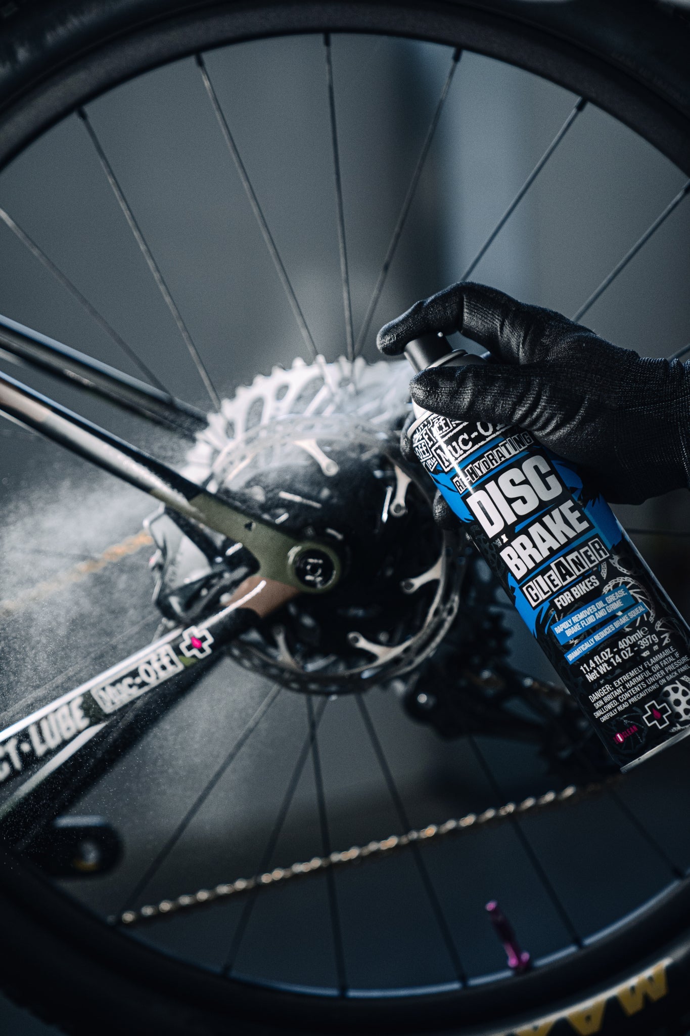 Much-off Disc Brake Cleaner can improve braking performance by rapidly removing brake dust and oil, as well as dirt and grime from all braking parts. Its unique formula has added conditioners that rehydrate your disc brake pads to dramatically reduce brake squeal, prolong the disc pad life and restore braking performance. Muc-Off Disc Brake Cleaner air-dries rapidly without leaving any residue, and itβs perfectly safe on rubber, plastic, anodized metals & carbon fibre. Please note - Disc Brake Cleaner should not be left on painted surfaces Improves braking performance Treats pads and rotors to reduce brake squeal Prolongs disc pad and rotor life Rapidly removes oil, grease, brake fluid, and grime Rehydrating formula to preserve braking components Weight - 400ml DANGER: Extremely flammable aerosol. Pressurized container. It May burst if heated. Keep out of reach of children.