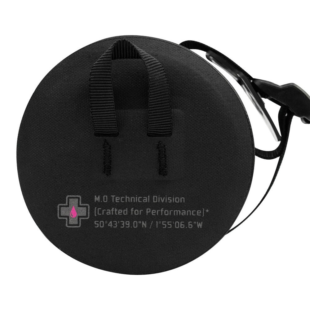 Made for riders, by riders, our Explorer Bar Bag is specifically designed to keep your stash safe and secure, whatever the conditions. Whether you're a commuter, weekend explorer or a seasoned bike packer, this lightweight bag is your ticket to stress-free adventure and ultimate convenience.The bag connects securely to your handlebars in seconds without the need for mounts or bolts, and it can hold up to 2.4 litres β so nothing gets left behind. Itβs made from a premium grade, water resistant 600D Polyester with TPU coating, everything will be nice and dry when itβs time to unpack.FEATURES Premium grade water resistant 600D Polyester with TPU coating Durable, welded seamless construction Water-resistant zip Cam buckle adjustable strap secures the bag to handlebars Hook and Loop adjustable strap secures the bag to headset Designed to fit inner tube and Muc-Off mini pump or CO2 inflator, Rim Stix, multi-tool, repair kit and other vital accessories Easy to fit and remove, no tools required Inner mesh net and zipped pocket Elasticated front bungee cords with adjustable puller Hypalon molle attachment loops Reflective printed graphics Lightweight Supplied with: 4 x foam spacers, shoulder strap & 2 x molle clips for attaching a Muc-Off Essentials case