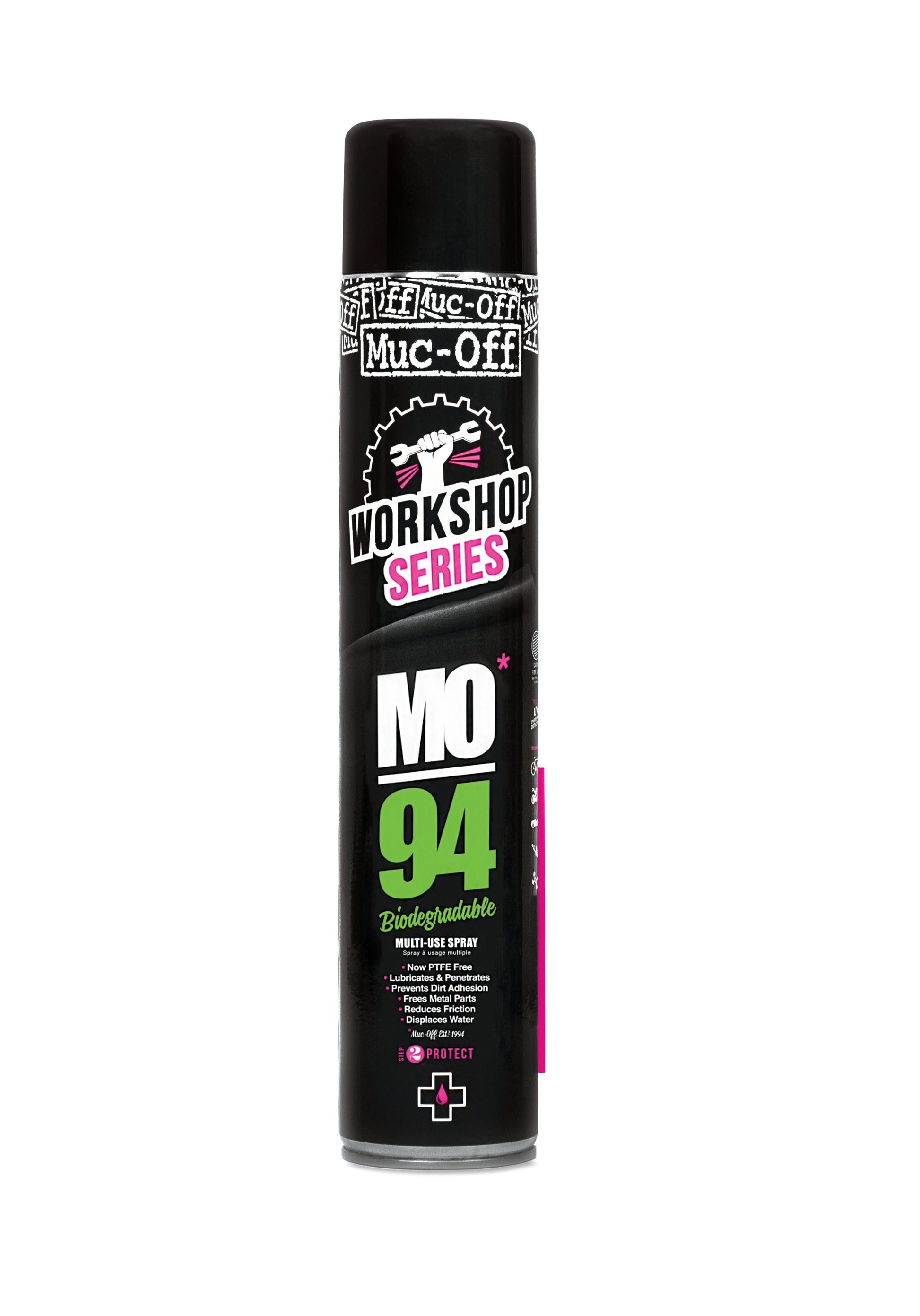 Looking for an all round wonder spray? Look no further! Muc-Off MO-94 covers all the bases with it's incredible formula that quickly and effectively penetrates moisture lubricates moving parts and leaves a long-lasting protective film. MO-94 prevents dirt adhesion and also drives out excess water to keep rust and corrosion at bay. MO-94 isn’t just for bikes, motorcycles, or cars. Nope. It works on just about anything. Disperses moisture to prevent rust and corrosion Provides light lubrication for moving parts Prevents dirt adhesion Cuts down on friction to improve component efficiency Biodegradable* Caution: Don’t apply it to your bike’s tyre treads and braking surfaces! Extremely flammable and pressurised container. It May burst if heated. Keep out of reach of children.