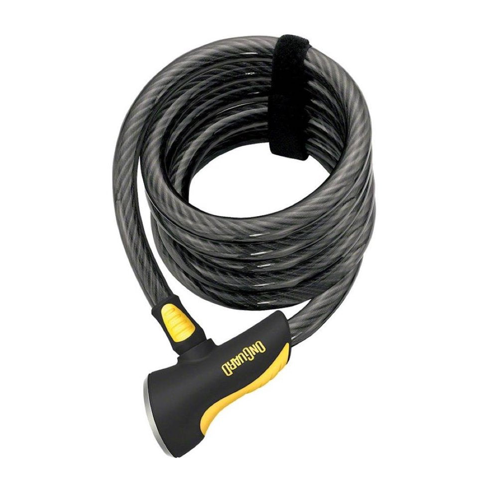Doberman series coil cable locks are lightweight, easy to carry, available with either keyed or combination lock mechanisms and offer fast, convenient security for medium to low-risk situations. Heavy-duty braided steel cables are self-coiling for convenience The vinyl coating protects paint and finishes Lock heads are permanently forged to cable ends Double rubber-coated lock head covers protect paint and finishes Key locks feature X2P Double Bolt lock heads for ultimate pull resistance and Z-cylinder which protects against picking and bump attacks. Combo locks feature a Steel Ball Combo gear system with a 4-digit user-settable combination The attached velcro straps contain unruly coils during transport Most models include All-Tube Twist Lock mounting bracket Key locks include 5 laser-cut keys, 1 with micro-LED 8031GLO combo lock features internal LED backlights to make it easier to see tumblers in the dark Padlock models (8033 and 8034) do not include a bracket or LED key Size: Length: 6’, Thickness: 12mm, Weight: 7.3 Key/Combo: Key Security Rating: 40