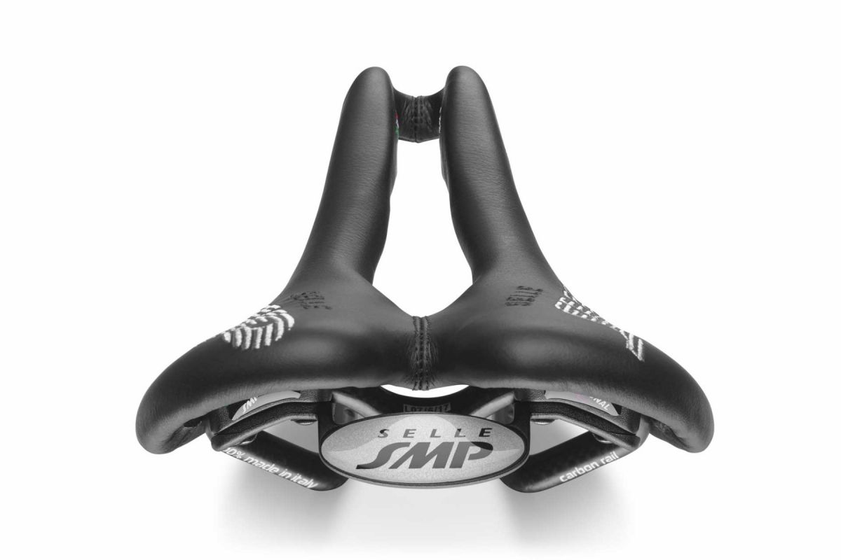 Forma's older sister that enhances the rigidity joined by extreme comfort. Designed for medium-large pelvises. Gender: Man, Woman Sit Bones Width: From 11,6 to 15,0 cm Pants Size: M, L, XL, XXL Use: MTB, Road, Gravel / Cyclocross, Commuter / Fixed Type of Bicycle: Traditional, E-Bike Padding Level: Thin Width: 138 mm - Length: 274 mm With AISI 304 Rail: 290 g With Carbon Rail: 235 g Padding: Foamed Elastomer Cover: Real Leather (black), Microfiber (colored) Body: Carbon Reinforced Nylon 12 AISI 304 rail: AISI 304 Stainless Steel Tube Ø 7.1 mm Carbon Rail: Unidirectional Carbon Fiber 7.1 x 9.0 mm Colors: Black, White, Red, Yellow, Yellow Fluo, Green IT, Green, Light Blue, Blue, Black Lady, White Lady