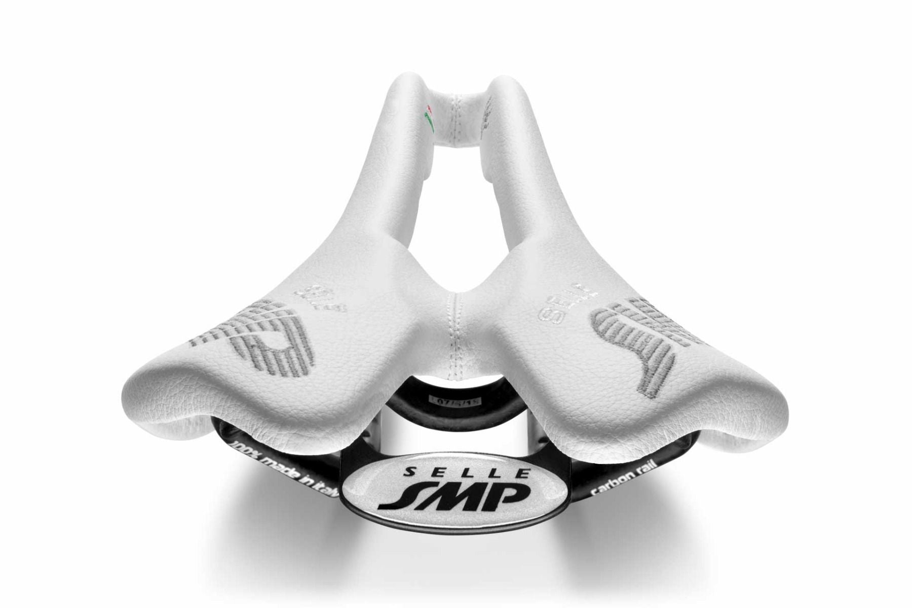 The best construction materials assembled with precision by Selle SMP craftsmen. The patented ergonomic design leaves maximum freedom of movement in the saddle. For cyclists with medium/wide sit bones. Gender: Man, Woman Sit Bones Width: From 12,1 to 15,0 cm Pants Size: M, L, XL, XXL Use: MTB, Road, Gravel / Cyclocross, Commuter / Fixed Type of Bicycle: Traditional, E-Bike Padding Level: Thin Width: 149 mm - Length: 295 mm With AISI 304 Rail: 295 g With Carbon Rail: 240 g Padding: Foamed Elastomer Cover: Real Leather (Black), Microfiber (Colored) Body: Carbon Reinforced Nylon 12 AISI 304 Rail: AISI 304 Stainless Steel Tube Ø 7.1 mm Carbon Rail: Unidirectional Carbon Fiber 7.1 x 9.0 mm Colors: Black, White, Red, Yellow, Yellow Fluo, Green IT, Green, Light Blue, Blue