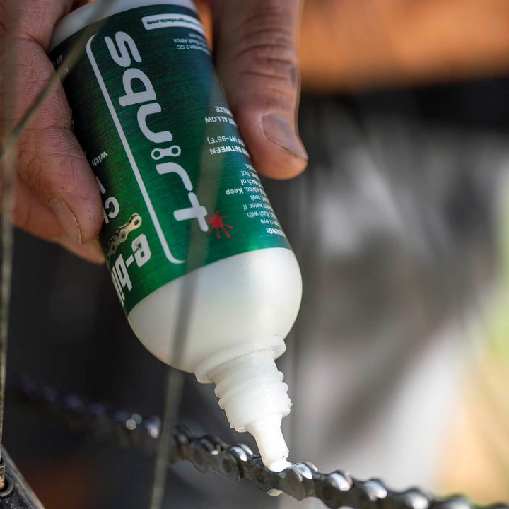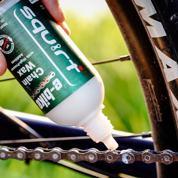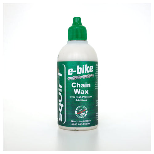 Squirt E-Bike chain lube is a wax emulsion lubricant designed for higher rotational force on chains of e-bikes. It has the same base formula as normal Squirt with selected high presurre additives.Squirt is biodegradable and contains selected waxes performing different functions in an emulsion. It runs at very low resistance.When applied to the chain it dries, leaving a microfilm of wax that is dry and water repelling. It does not attract dust or debris and stays clean. Unlike oil based lubricants, Squirt E-Bike does not form a black paste that causes long term damage to a drive-train. It stays clean in all conditions, ideal for e-bike drivetrains with higher torques. Contains high-pressure additives Wet & dry conditions Stays clean Reduces chain noise For use on all e-bike chain types Biodegradable, PFAS-free formula, Solvent-free