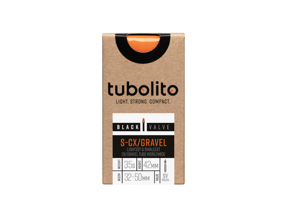 Not only a spare: Developed to fit in any small pocket, 35 grams lightweight S-Tubo-CX/Gravel-All, due to its very small packed size, is the ideal spare tube for all 700C and 650B tires from 32 mm β 50 mm width. However, it is not only a savior in need but can be perfectly used on a daily basis as it still is as robust as standard rubber tubes.Also leftovers of tubeless liquids do not do any harm to it. Given itβs low rolling resistance it can also become a decisive advantage in competitions. Available with 42 mm (35 grams) and 60 mm (36 grams) Presta valves (orange and black variants) and suitable for disc brakes.