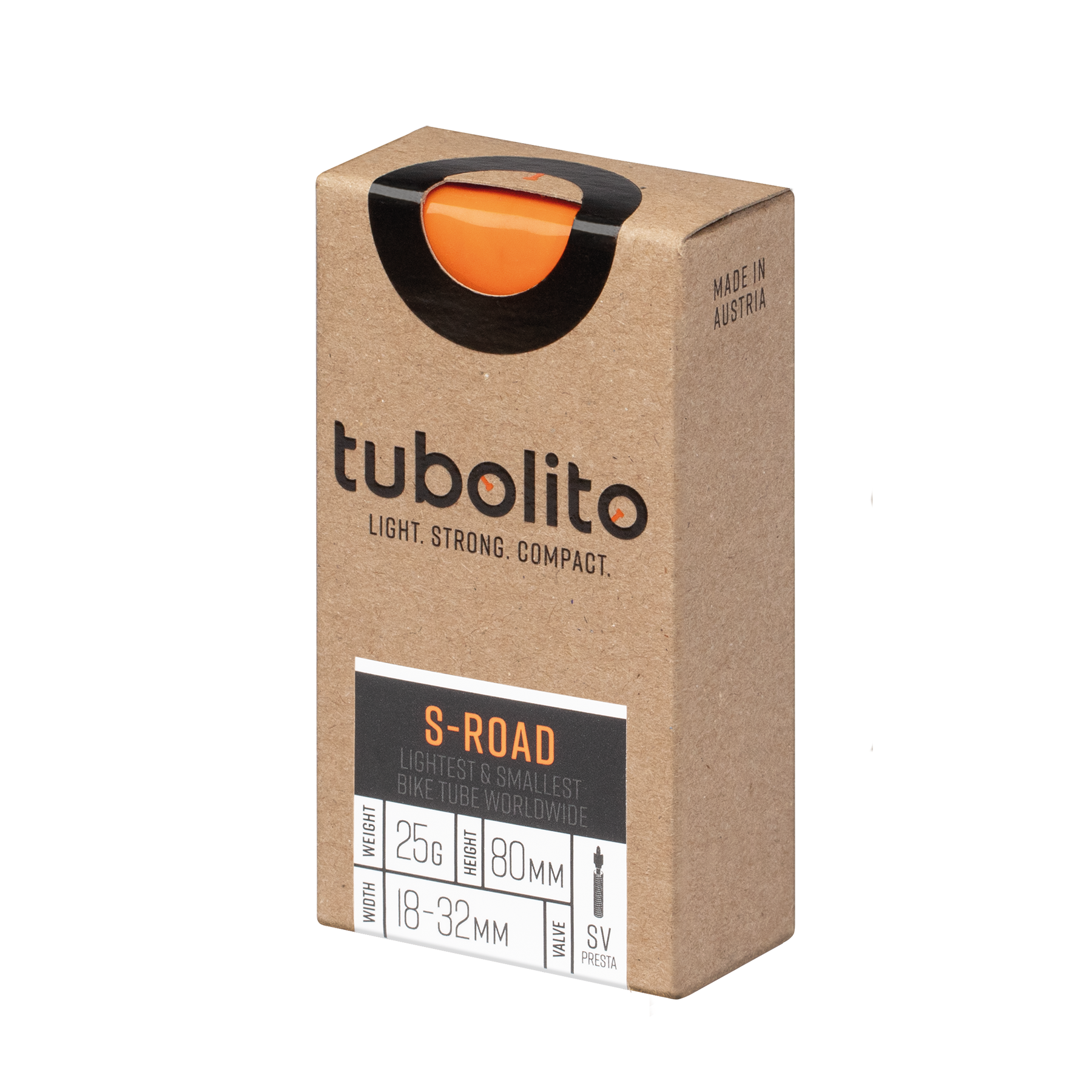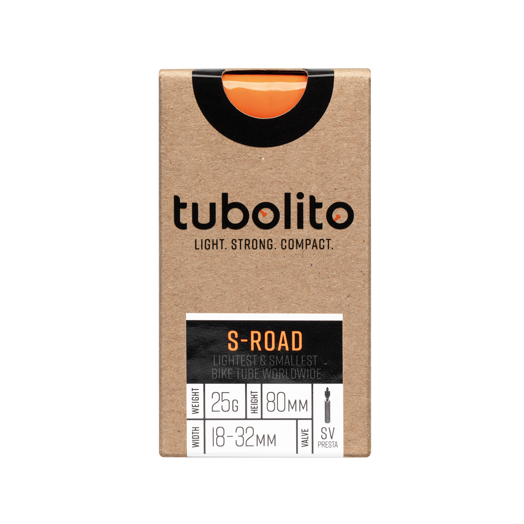 With a featherweight of 23 g the super-compact (when rolled up) S-Tubo-Road-700C stands out with very low rolling resistance which outpaces standard rubber tubes yet is comparable to latex tubes. With a 78 % smaller packed size and the same puncture resistance as standard tubes the S-Tubo-Road-700C is the perfect choice as a spare and can be the crucial factor when youβre riding long and hard. Ready for disc brakes only. Available with black and orange valve.