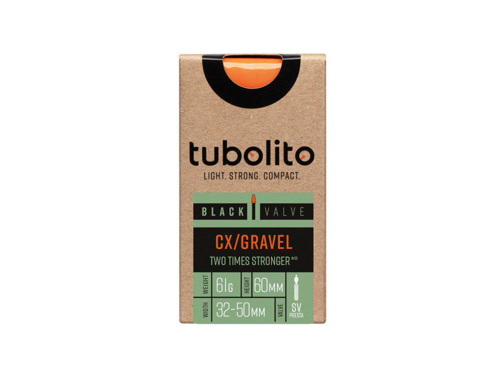 Made for tire widths from 32 mm to 50 mm and ready for rim brakes and disc brakes, the Tubo-CX/Gravel-All is twice as robust as standard tubes. At the same time, due to its low weight of 60 grams, it guarantees twinkle-toed rides.The 50 % smaller packed size makes it also a spare tube which fits in every pocket. Besides 700C tires it is also ready for 650B wheels. Available with black and orange valves.