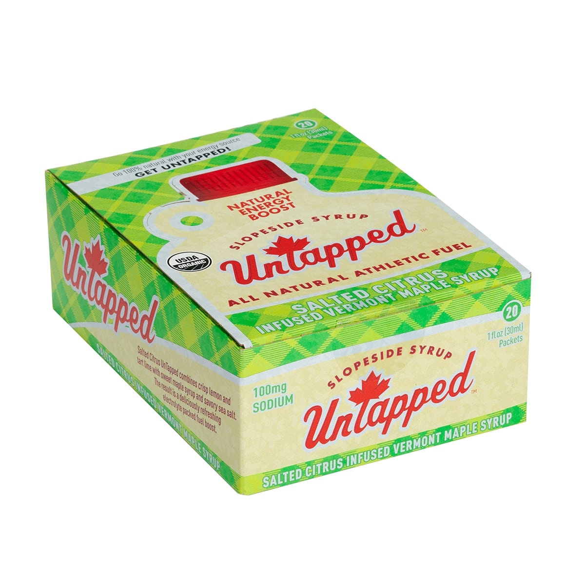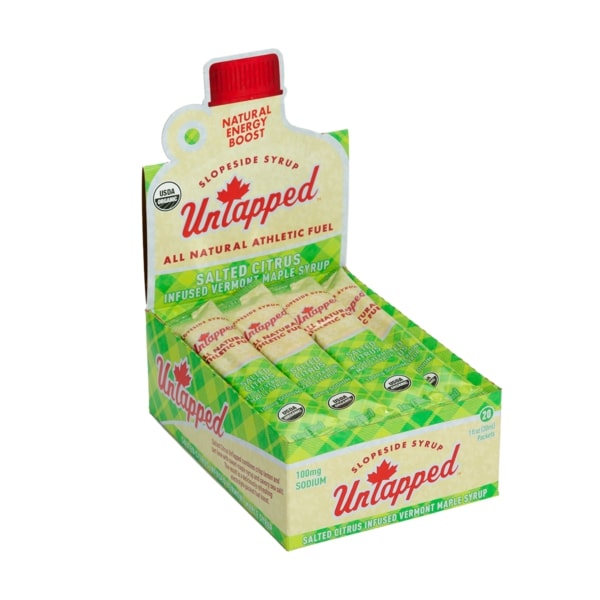 Salted Citrus UnTapped is the delicious combination of pure Vermont maple syrup, organic lemon and lime juice, and sea salt. As part of the salted line of UnTapped packets, Salted Citrus UnTapped contains 100mg of sodium to help you maintain your electrolyte balance in the heart of competition or a simple training session.Ingredients:Organic Pure Vermont Maple Syrup, Organic Lemon Juice, Organic Lime Juice, Sea Salt.Nutrition Facts:Nutrition Facts Servings: 1 Serving Size: 1 Packet (38g), Amount per serving: Calories 100, Total Fat 0g (0% DV), Sodium 100mg (0% DV), Total Carb. 26g (9% DV), Total Sugars 26g (50% DV), Protein 0g ( 0% DV), Calcium (4% DV), Iron (1% DV), Potassium 85mg ( 2% DV), Thiamin (2% DV), Riboflavin (15% DV), Magnesium (2% DV), Zinc (6% DV), Manganese (35% DV)