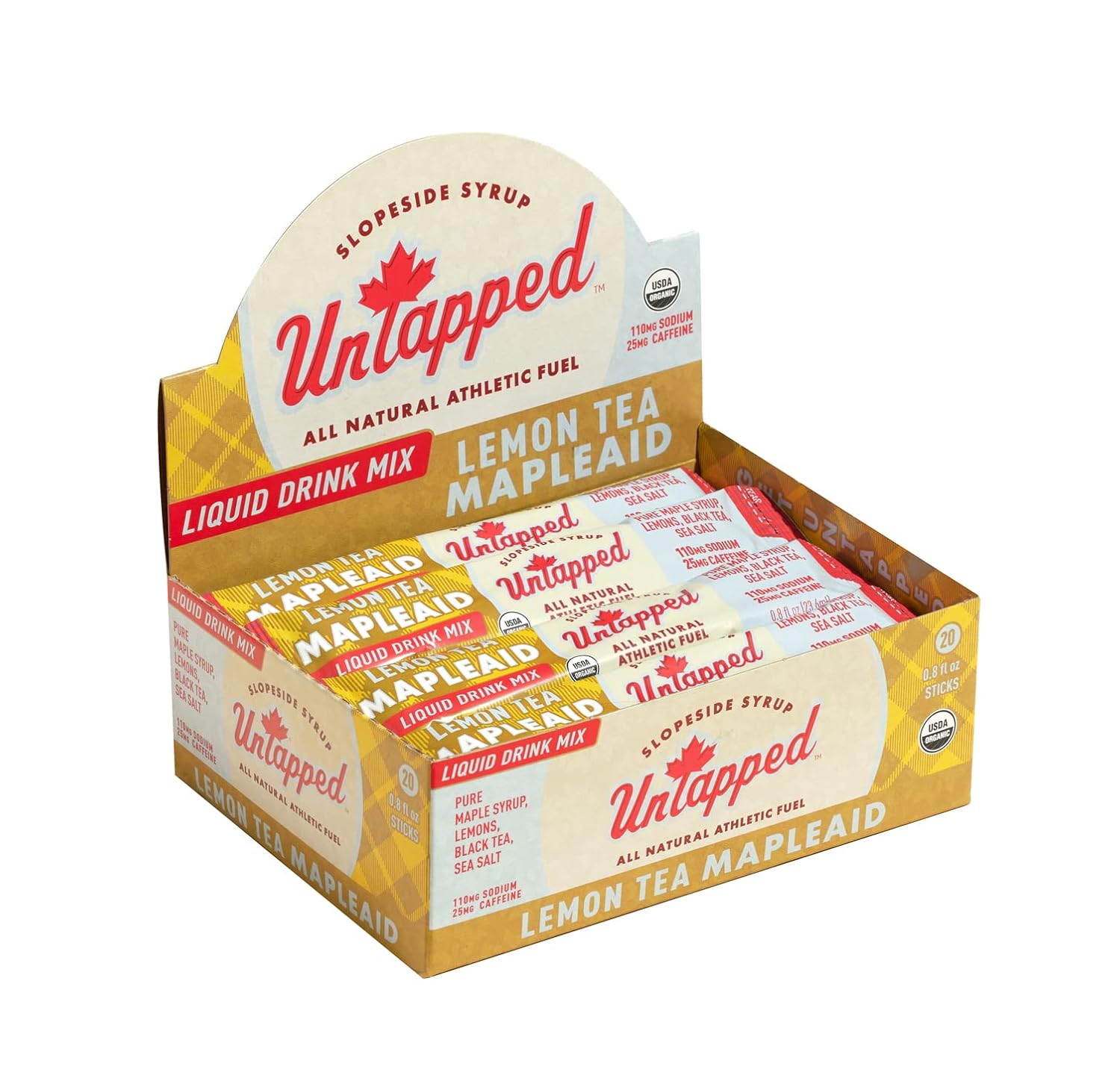 Past winner of Runner’s World Gear of the Year! Our Lemon Tea Mapleaid is made with unrefined, pure maple syrup that has the minerals, amino acids, and antioxidants to make it an ideal athletic fuel. The crisp citrus taste comes only from real lemons while organic black tea provides a natural caffeine boost. A touch of sea salt rounds out this simple, delicious, portable take on the classic drink.Ingredients:Vermont Maple Syrup*, Lemons*, Black Tea*, Sea Salt. *ORGANIC.Nutrition Facts:Nutrition Facts Servings: 1, Serv. size: 1 packet (32g), Amount per serving: Calories 80, Total Fat 0g (0% DV), Sodium 110mg (5% DV), Total Carb. 21g (8% DV), Total Sugars 17g (Incl. 16g Added Sugars, 32% DV), Protein 0g, Calcium (31mg, 3% DV), Iron (0.1% DV, Potas. (125mg, 3% DV) Thiamin (2% DV), Riboflavin 30% DV), Magnesium (2% DV), Zinc (4% DV), Manganese (40% DV), Not a significant source of sat. fat, cholest., fiber and vit. D.