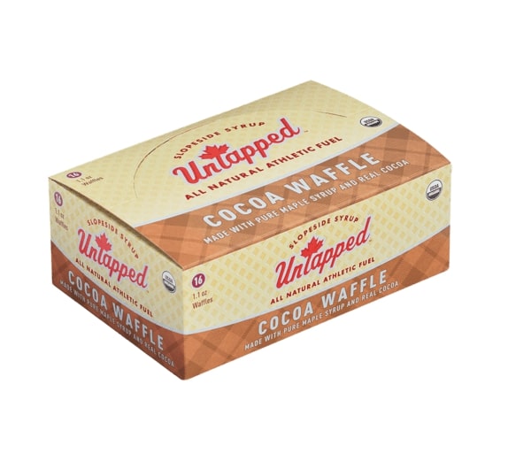 The UnTapped Cocoa Waffle blends rich organic cocoa with pure maple syrup for a luscious chocolate taste. This tasty snack is sure to power you through the summer heat or warm you up on your next winter adventure.Ingredients:Wheat Flour*, Pure Maple Syrup and Maple Sugar*, Sustainably Produced Palm Fruit Oil*, Invert Maple Syrup*, Cocoa*, Soy Flour*, Sea Salt, Rice Extract*, Soy Lecithin, Baking Soda. *ORGANIC. Contains: Wheat, SoyNutrition Facts:Nutrition Facts Servings: 1 Serving Size: 1 Waffle (30g), Amount per serving: Calories 140, Total Fat 6g (8% DV), Saturated Fat 2.6g (13% DV), Sodium 60mg (3% DV), Total Carb. 20g (7% DV), Dietary Fiber 0.8g (3% DV), Total Sugars 11g (Incl. 11g Added Sugars, 22% DV), Protein 1g ( 3% DV), Calcium 27mg (2% DV), Vitamin C 1mg (1% DV), Potassium 72mg ( 2% DV), Iron 1mg ( 4% DV).